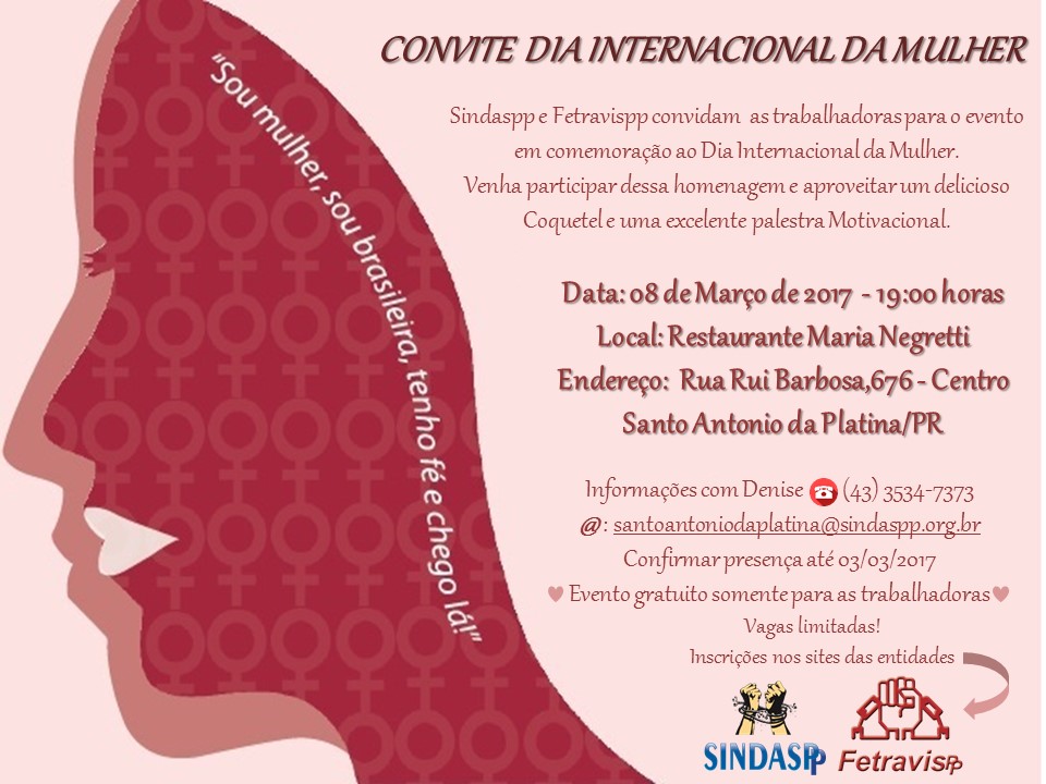INVESTIMENTO: Gratuito somente para as trabalhadoras.